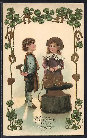 AK Schmied mit goldenem Kleeblatt, Neujahrsgruss
