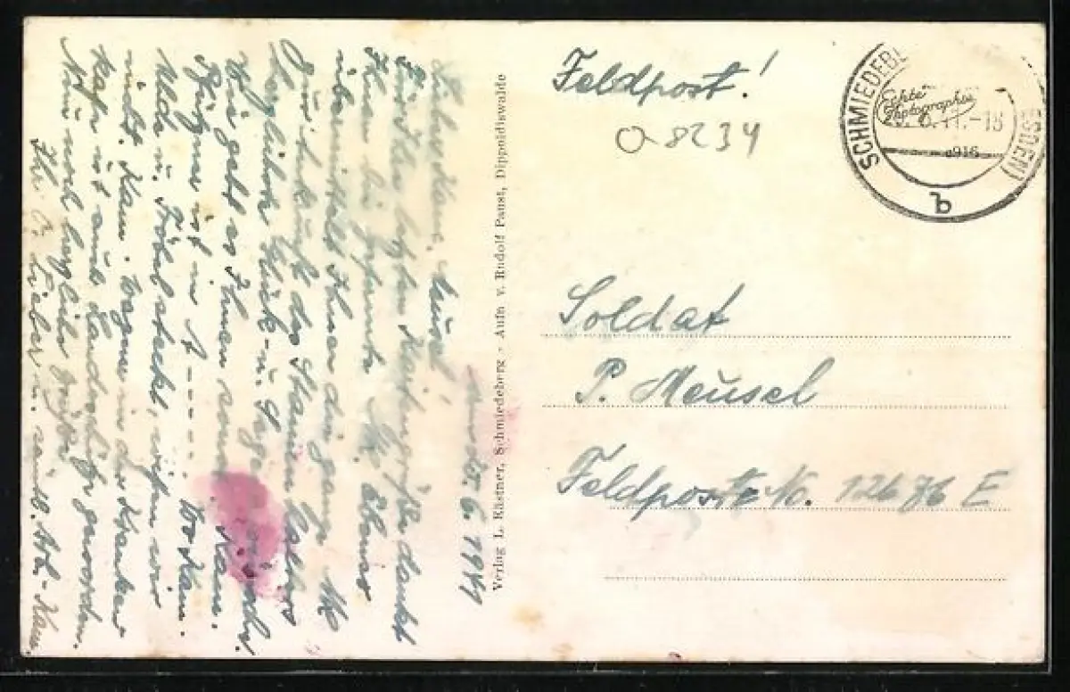 alte Ansichtskarte, gelaufen, rückseitig Klebe- und Papierreste, Eckknick oben links, guter Zustand