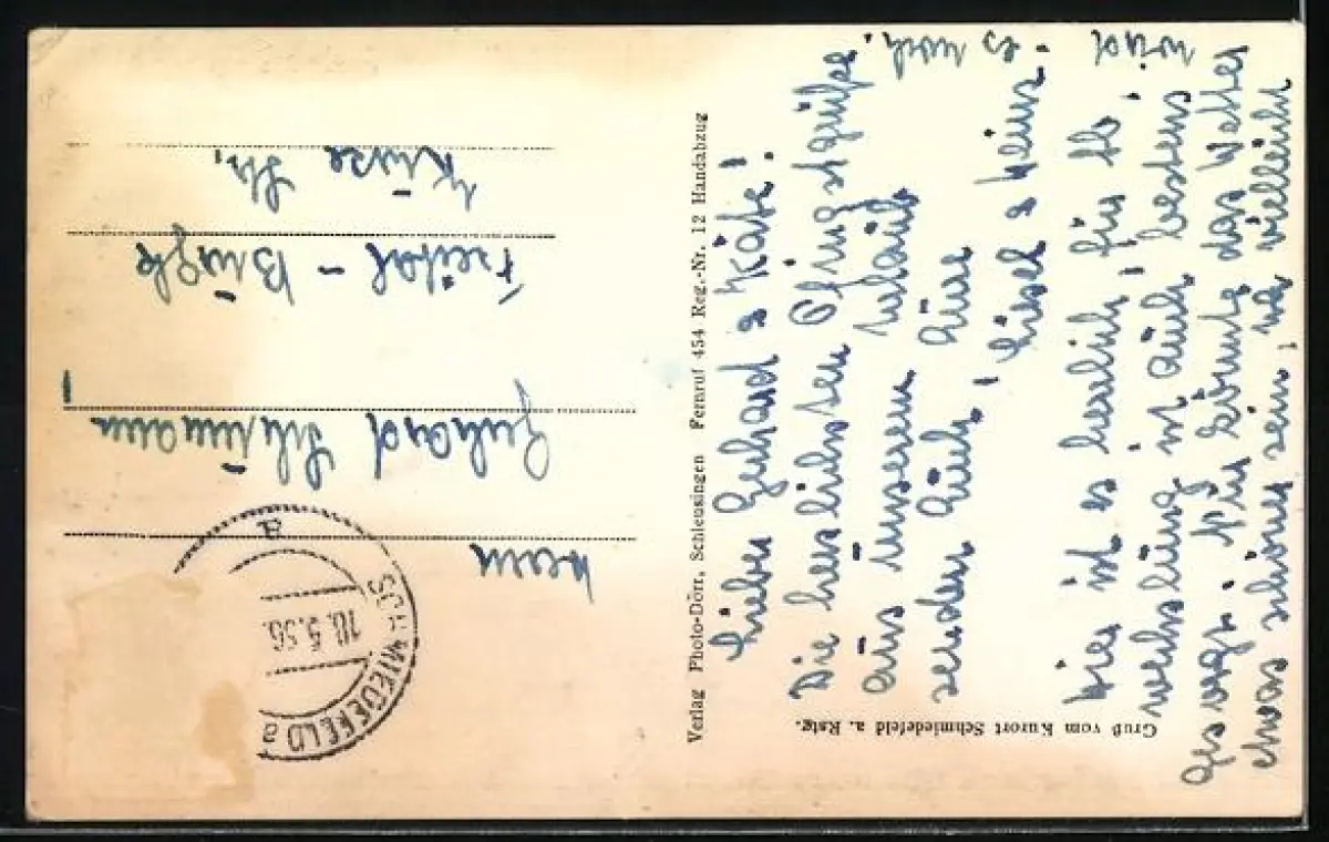 alte Ansichtskarte, gelaufen 1956, Eckknick re. oben, Briefmarke entfernt