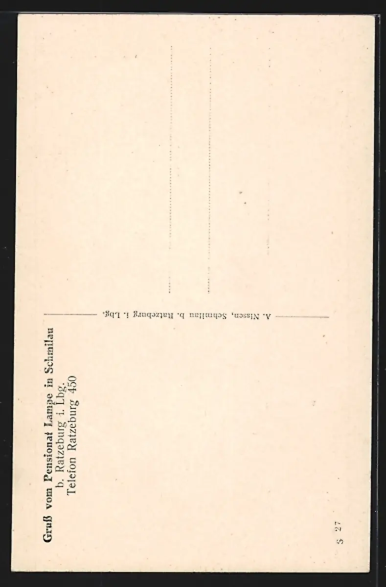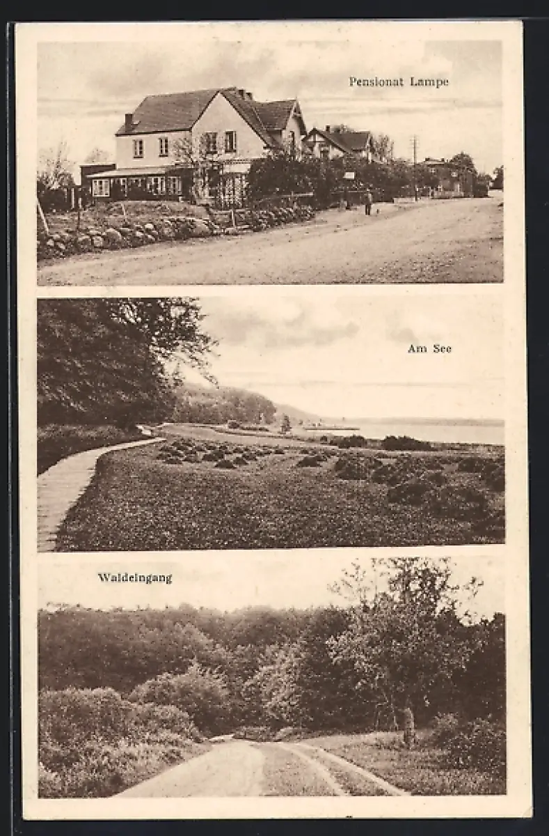 AK Schmilau b. Ratzeburg, Pensionat Lampe, See, Waldeingang