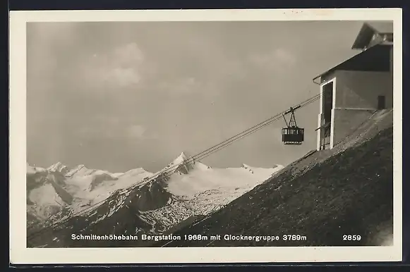 AK Schmittenhöhe, Bergbahn u. Bergstation mit Glocknergruppe