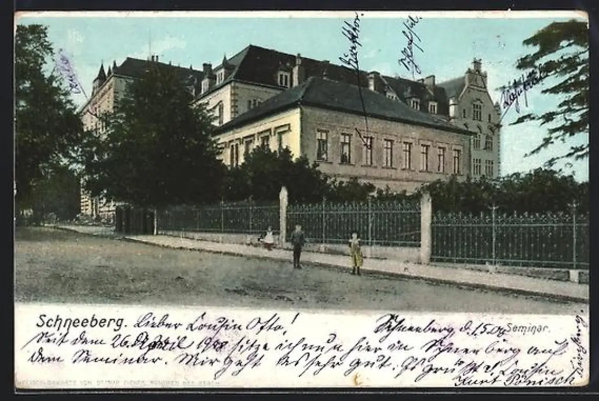 AK Schneeberg / Erzgebirge, Strassenpartie am Seminar