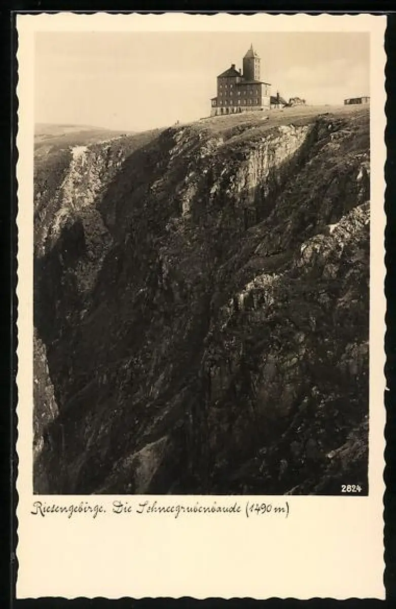 AK Schneegrubenbaude /Riesengebirge, Blick zur Berghütte