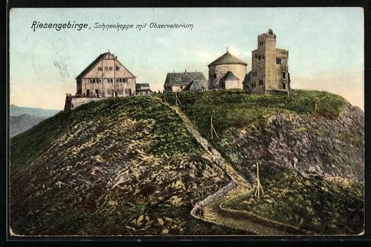 AK Schneekoppe /Riesengebirge, Schneekoppe mit Observatorium