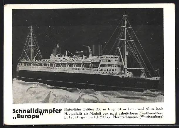 AK Schnelldampfer Europa, Modell zweier arbeitsloser Familienväter aus Herbrechtingen
