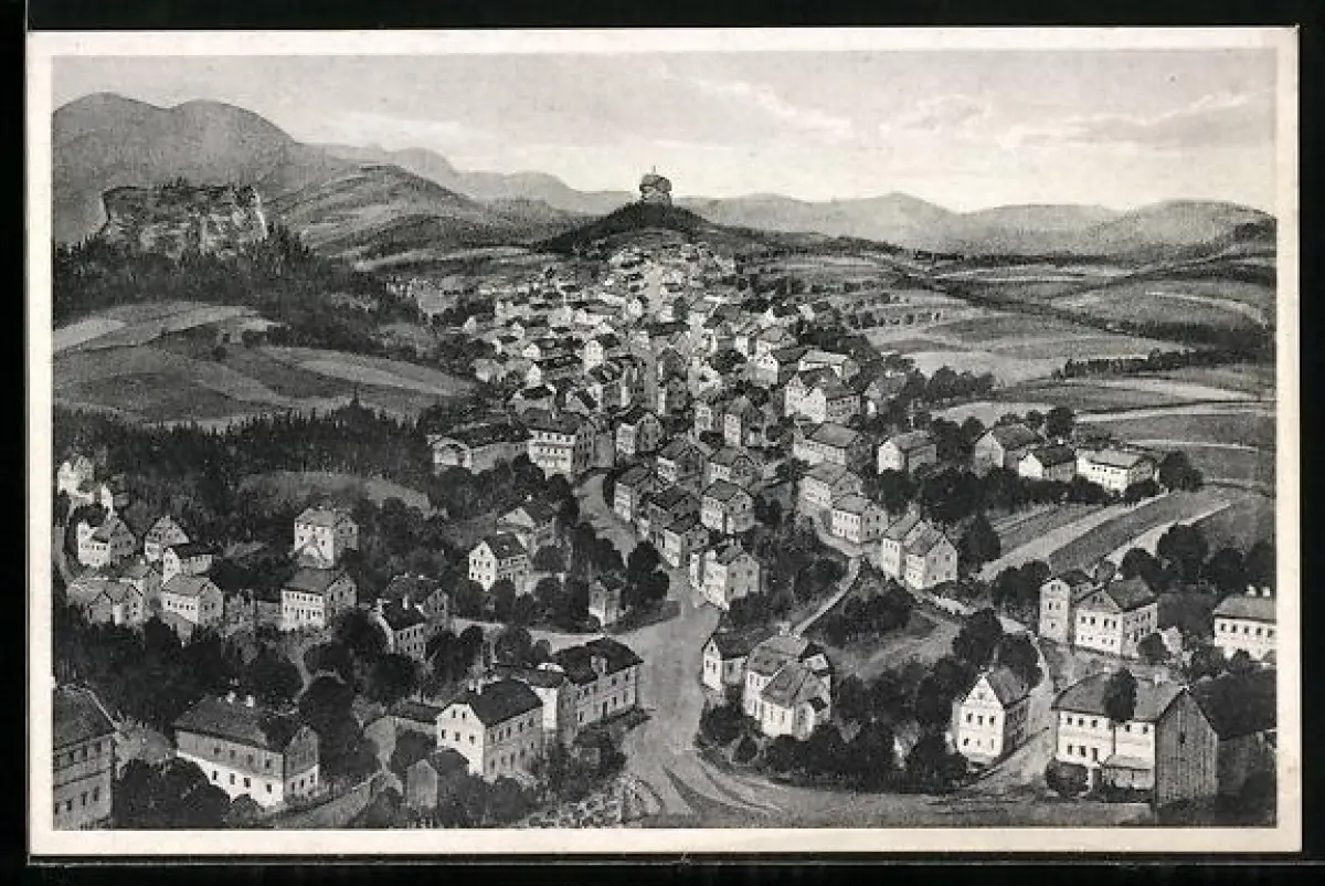 AK Schöna /Sächs. Schweiz, Vogelschau auf den Ort und Umgebung