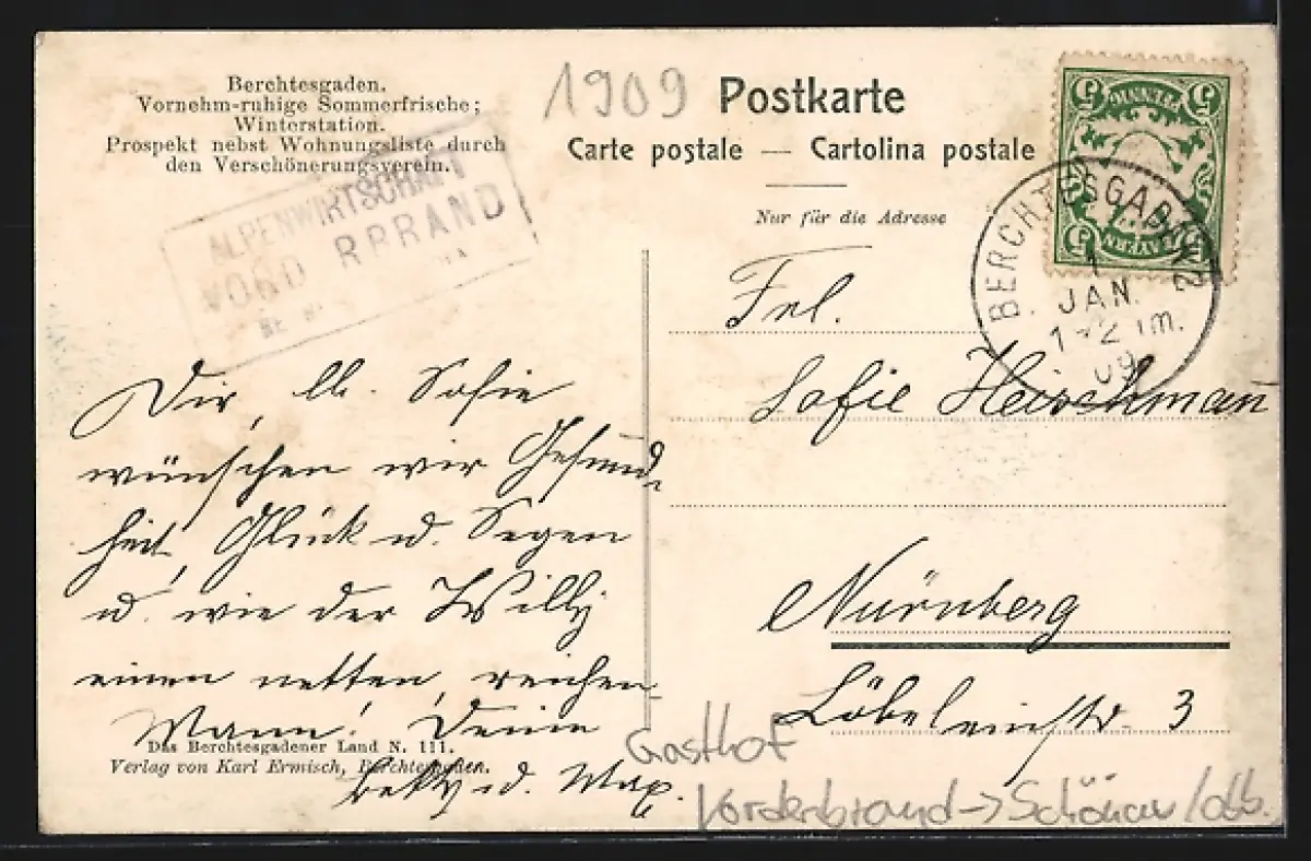 alte Ansichtskarte, gelaufen 1909, guter Zustand