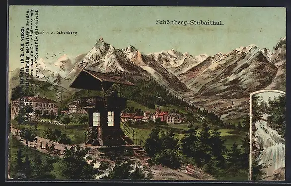AK Schönberg /Stubaithal, Jägerhof auf dem Schönberg, Wasserfall