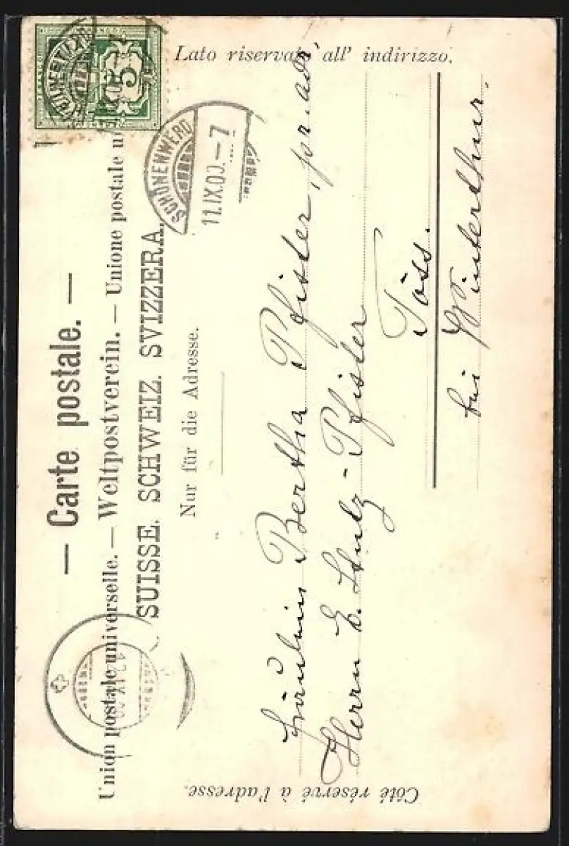 alte Ansichtskarte, gelaufen 1900, Abriebspur li. unten, guter Zustand