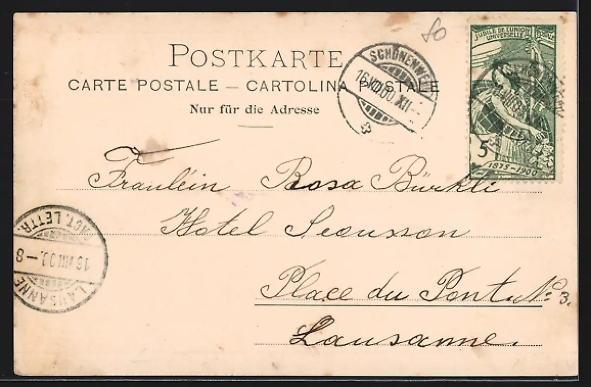 alte Ansichtskarte, gelaufen 1900, guter Zustand