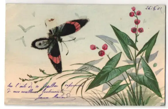 AK Schöner Schmetterling aus Samt auf einer Blumenwiese