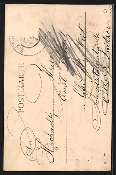 alte Ansichtskarte, gelaufen, Briefmarke entfernt, guter Zustand
