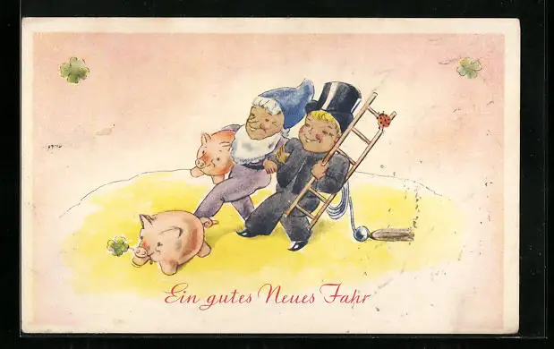AK Schornsteinfeger in Begleitung von einem Zwerg zu Neujahr