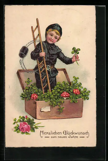 AK Schornsteinfeger in der Truhe voller Glücksklee