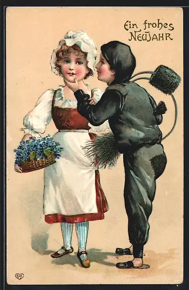 AK Schornsteinfeger wünscht Blumenmädchen ein frohes Neujahr