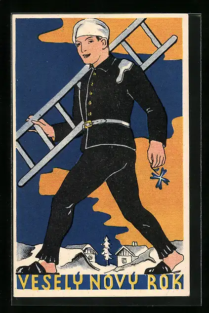 AK Schornsteinfeher mit Leiter und Kleeblatt, Neujahrsgruss