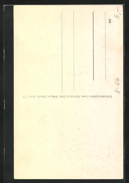 Personenbezogene Daten auf der Rückseite der Karte wurden durch blauen Textmarker unkenntlich gemacht. Die blauen Stellen sind auf die Vorderseite durchgeweicht und wirken sich negativ auf das Postkartenfoto aus