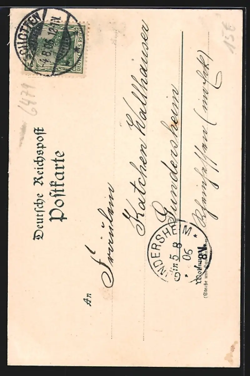 alte Ansichtskarte, gelaufen 1906, Stempelspur, guter Zustand