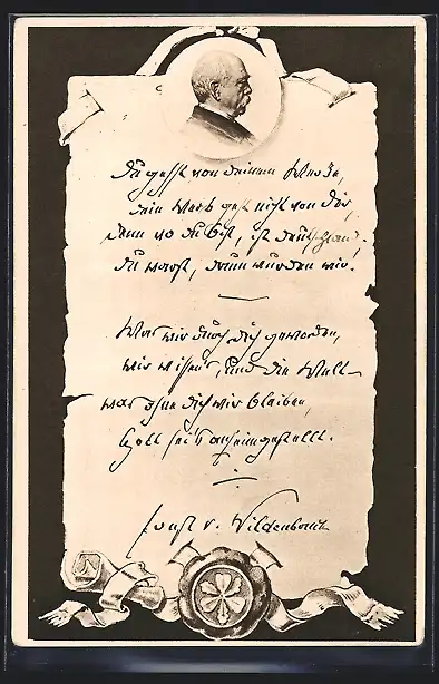AK Schreiben von Wildenbruch an Bismarck mit Bismarck-Portrait, Siegel