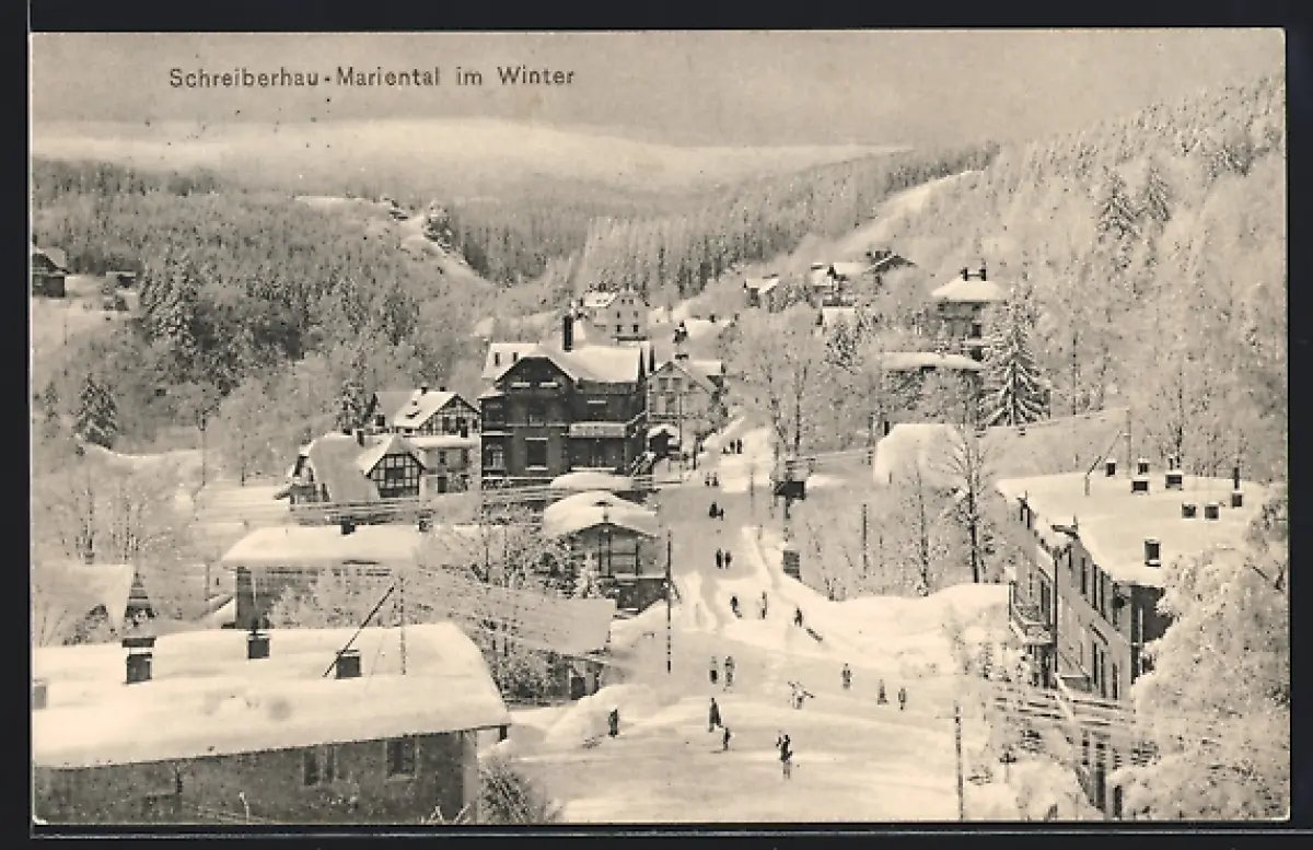 AK Schreiberhau-Mariental, Ortsansicht im Winter