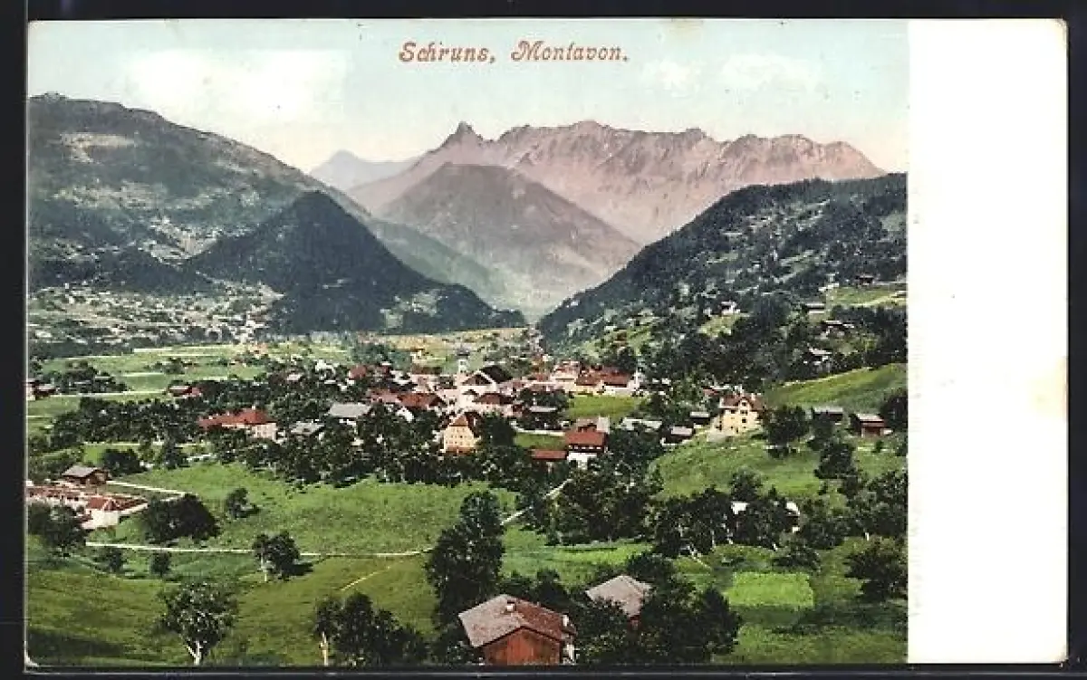 AK Schruns /Montavon, Ortsansicht aus der Vogelschau