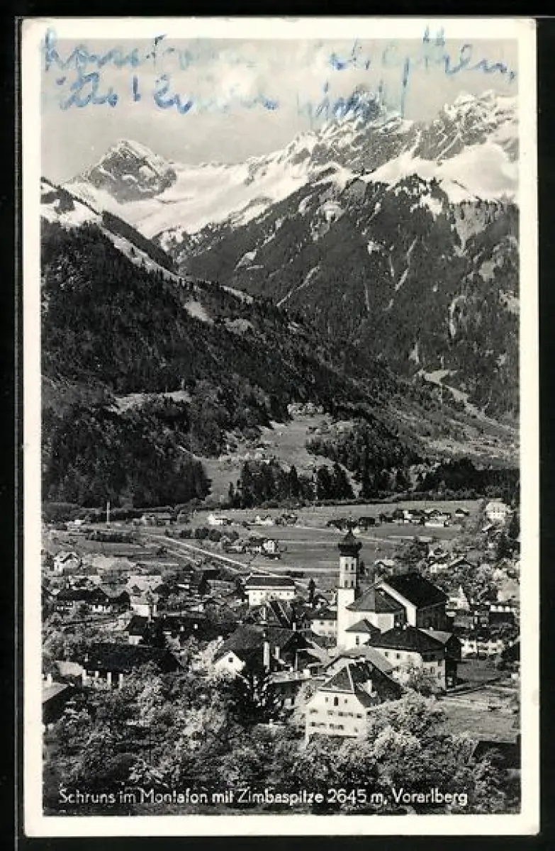 AK Schruns, Ortsansicht mit Zimbaspitze