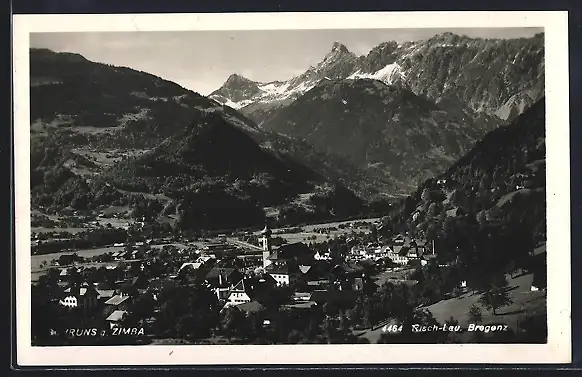 AK Schruns, Totalansicht mit Kirche gegen Zimba