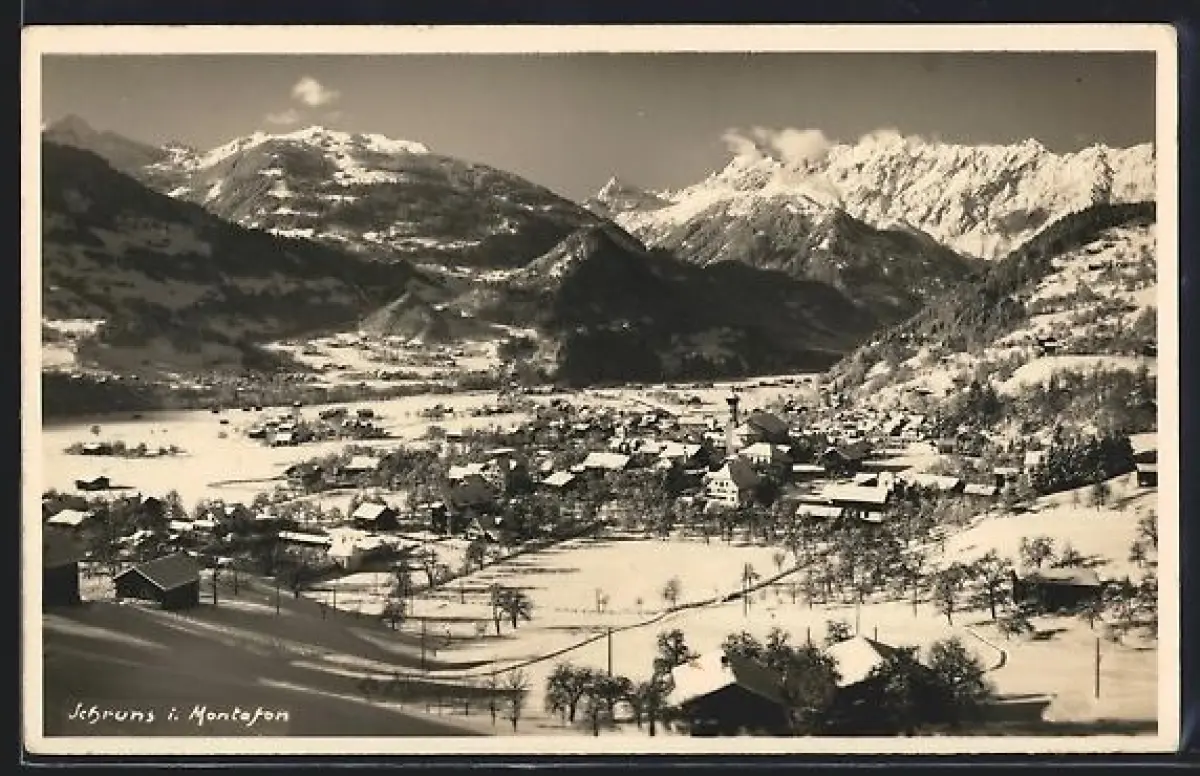 AK Schruns i. Montafon, Ortsansicht im Schnee