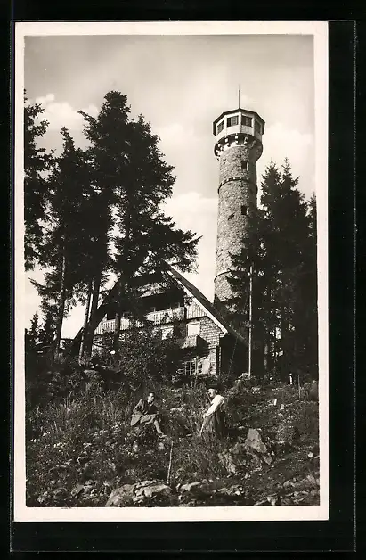 AK Schüttenhofen, Aussichtsturm u. Touristen-Baude am Svatobor