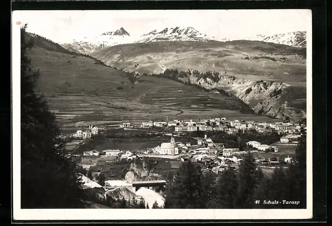 AK Schuls-Tarasp, Ortspanorama mit Gebirge