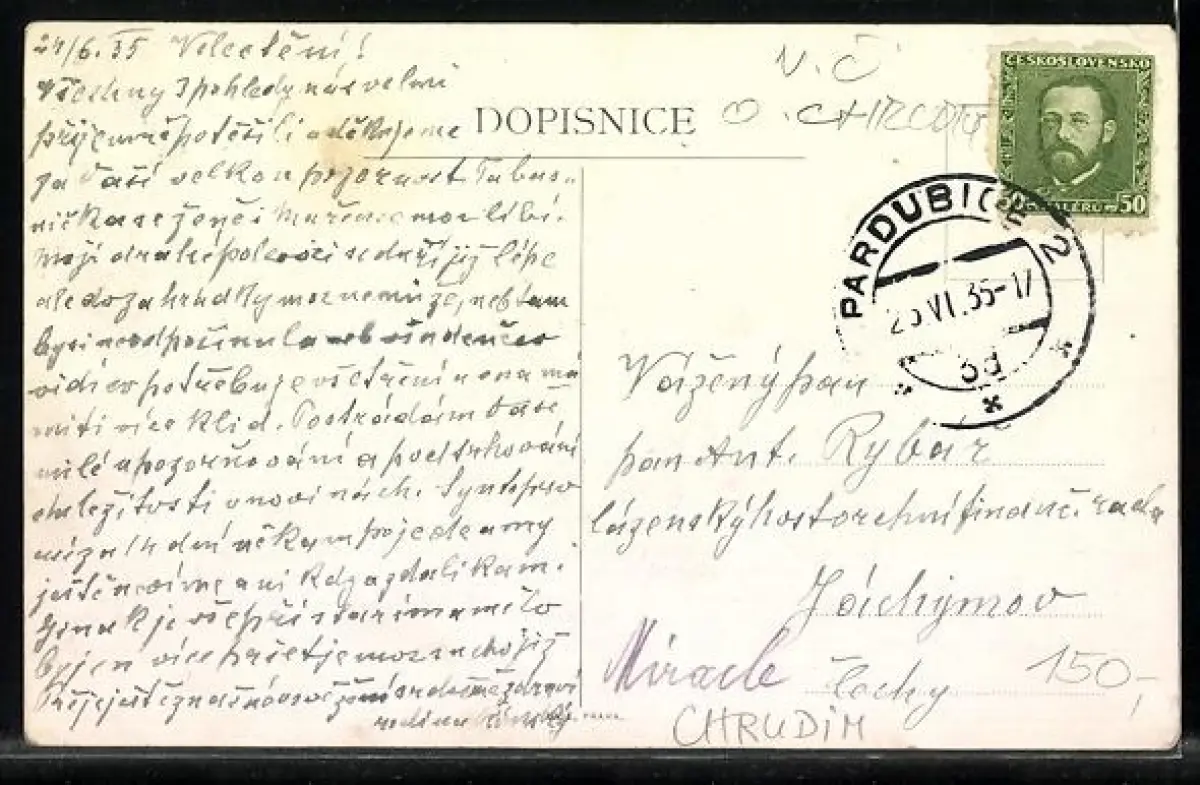 gelaufen 1935, minim. Eckschaden oben li., guter Zustand