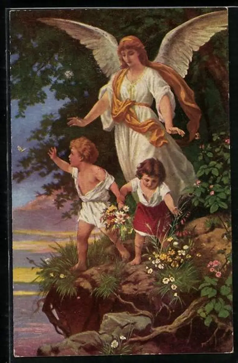 AK Schutzengel wacht über die Kinder an der Felsenkante