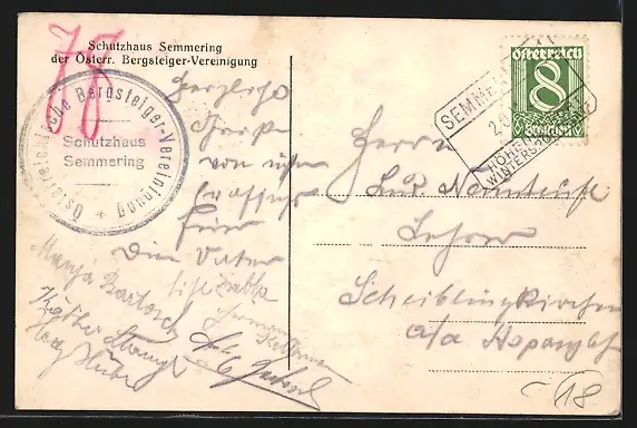 AK Schutzhaus Semmering, Ansicht der Berghütte