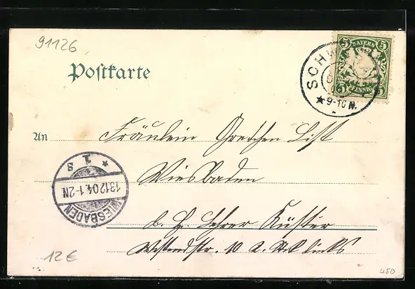 alte Ansichtskarte, gelaufen 1904, guter Zustand