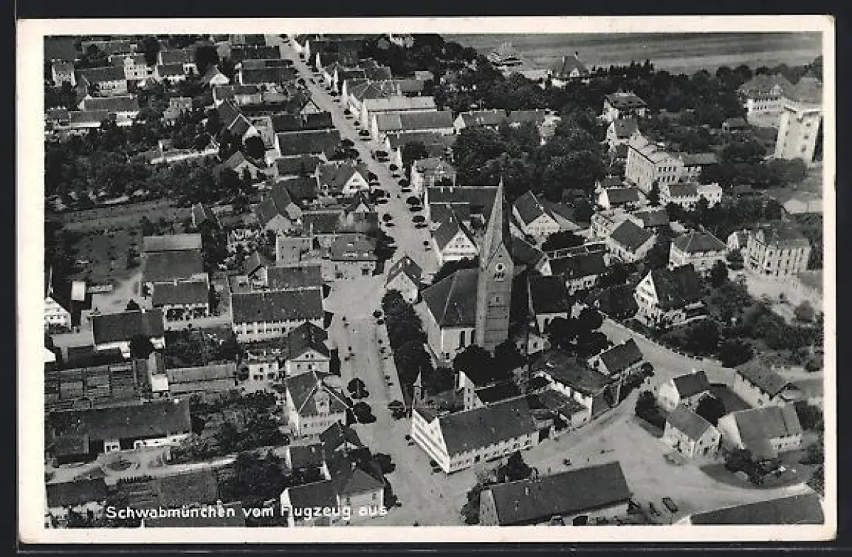 AK Schwabmünchen, Luftaufnahme, Ortsansicht mit Kirche