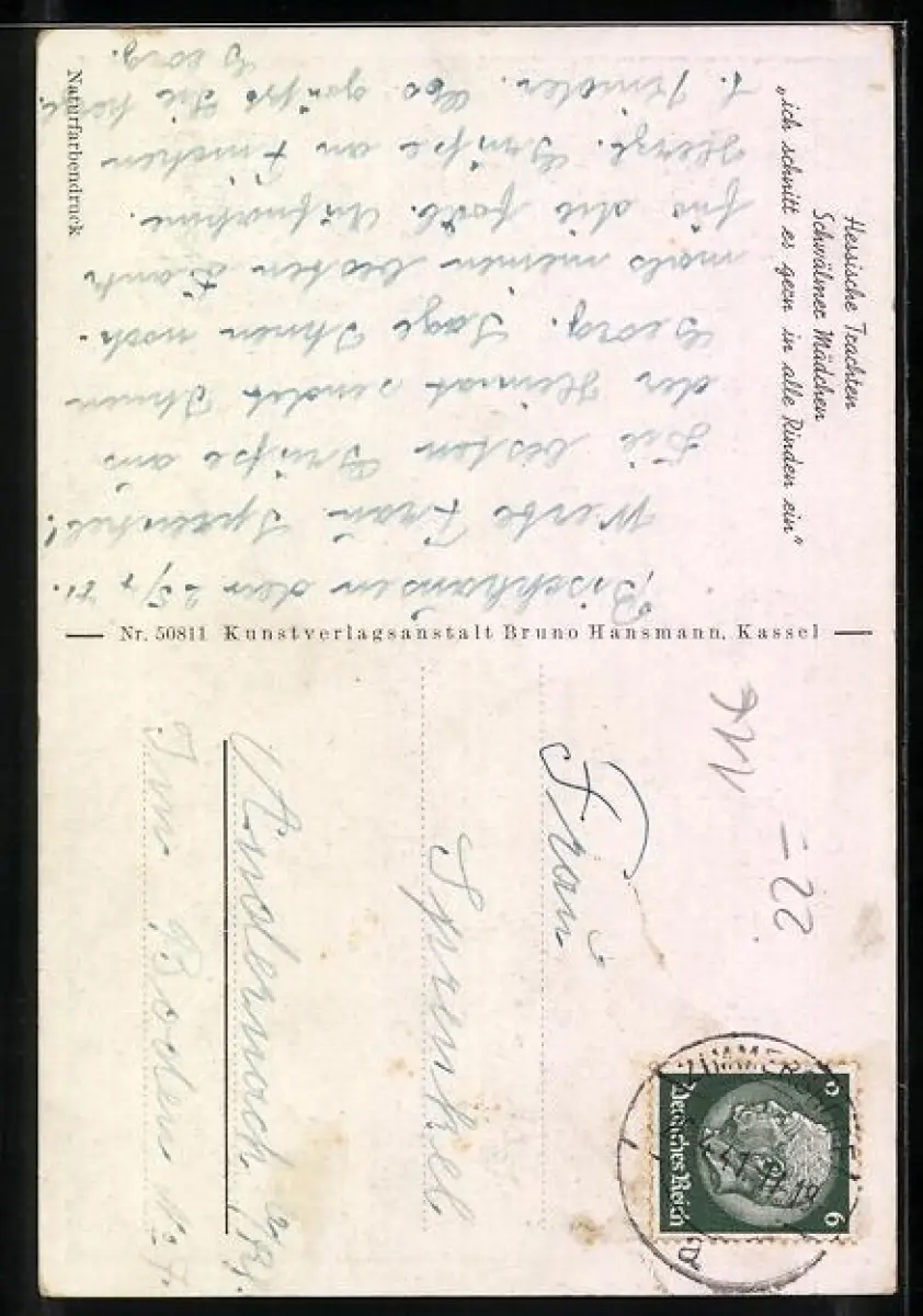 AK Schwälmer Mädchen in Tracht Ich schnitt es gern in alle Rinden ein