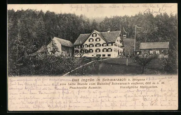 AK Schwarzach b. Bregenz, Blick zum Gasthaus Bad Ingrün