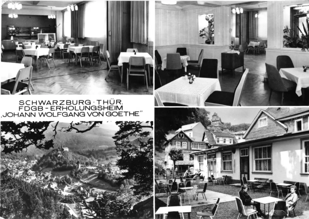 Ansichtskarte Schwarzburg Thür. FDGB-Heim "Johann Wolfgang von Goethe" vier Abb. Erhaltung I-II ungelaufen Druckvermerk: 1977 Herstellungsland: DDR Verlag: Bild und Heimat, Reichenbach i. V. - 01 10 06 342