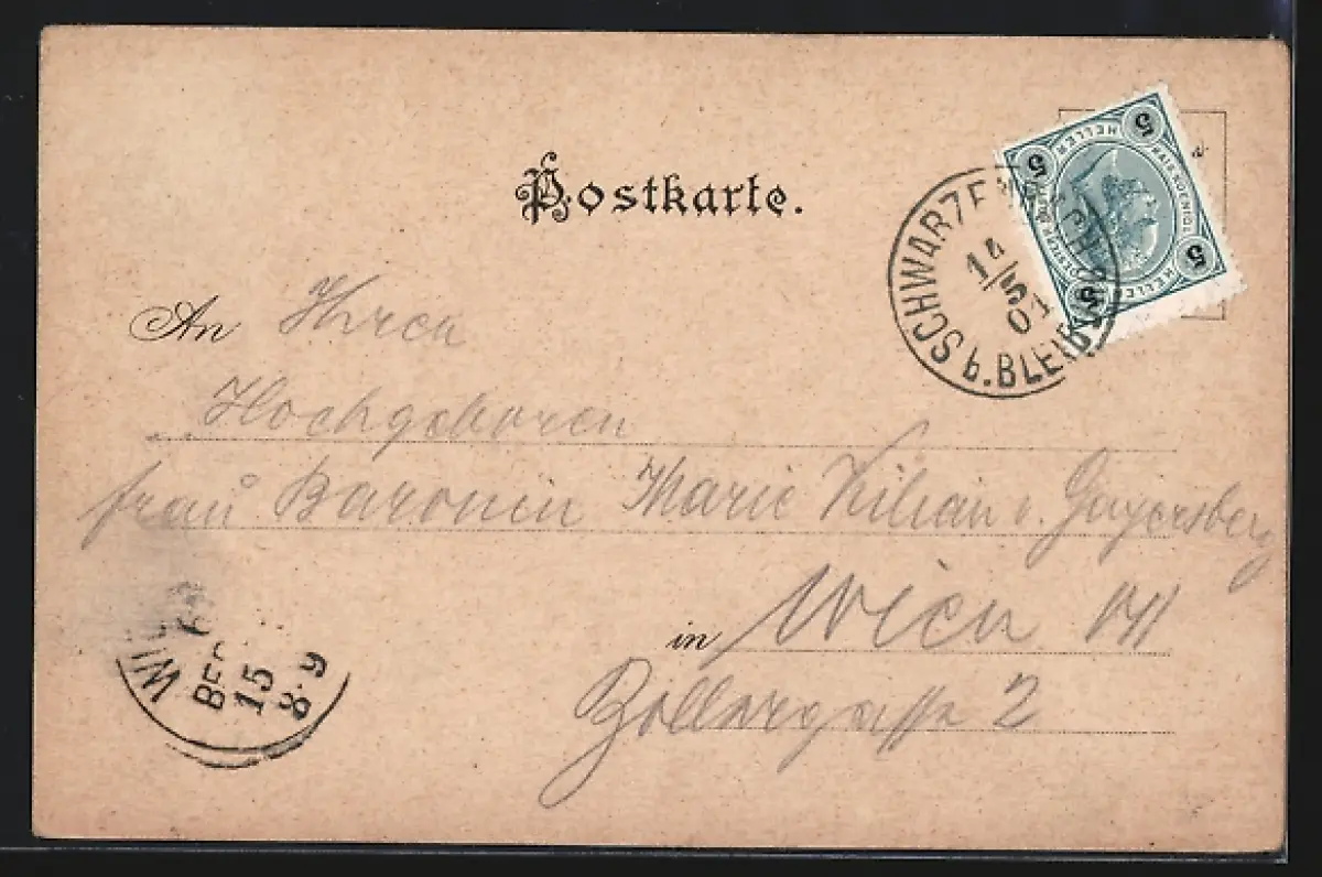 gelaufen 1901, Ecken bestoßen, guter Zustand