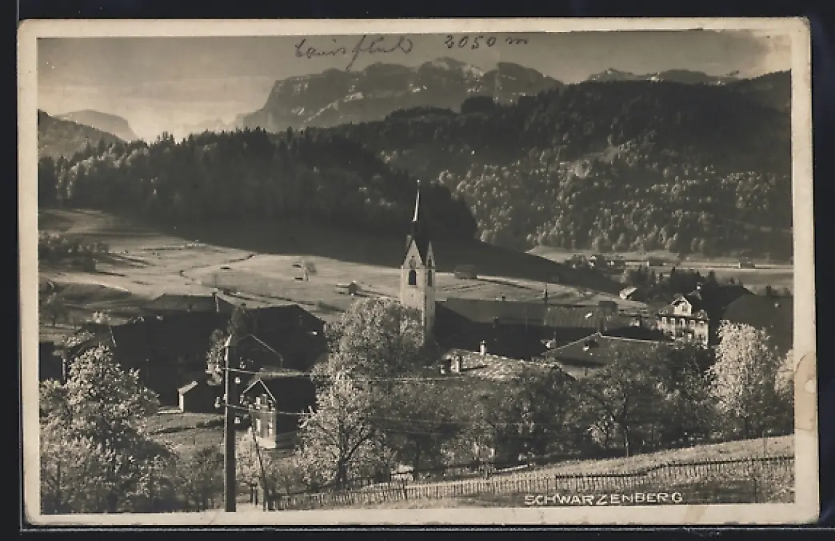 AK Schwarzenberg, Ortsansicht mit Kirche und Bergen