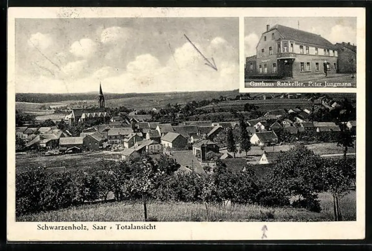 AK Schwarzenholz /Saar, Gasthaus Ratskeller, Peter Jugmann, Totalansicht des Ortes