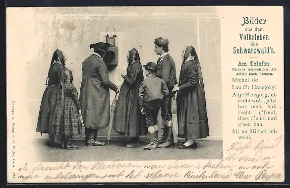 AK Schwarzwälder in Trachten am Telefon
