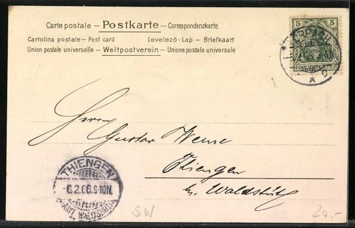 alte Ansichtskarte, gelaufen 1906, Eckknick li. oben, guter Zustand
