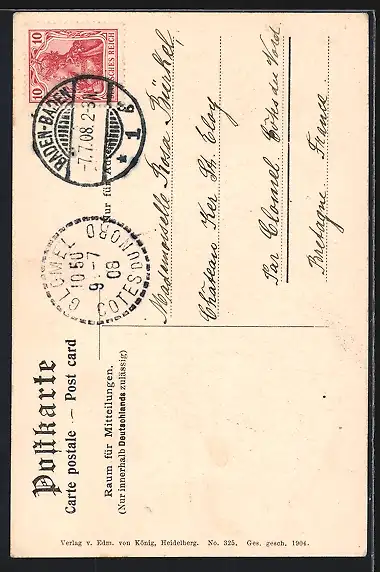 alte Ansichtskarte, gelaufen 1908, guter Zustand