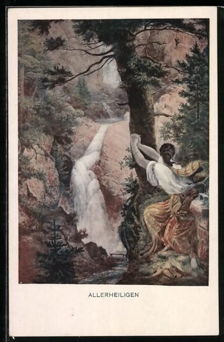 AK Schwarzwaldsagen, Szene am Wasserfall, Allerheiligen