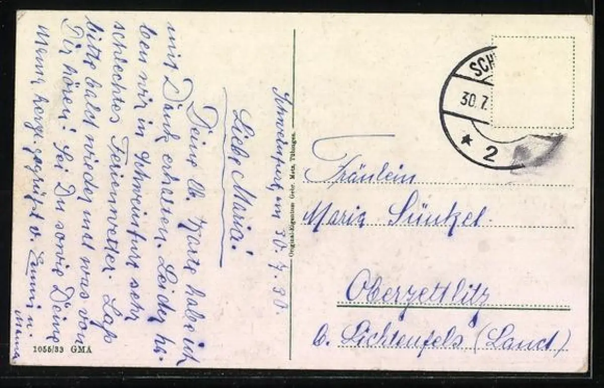 alte Ansichtskarte, gelaufen, Briefmarke entfernt, guter Zustand