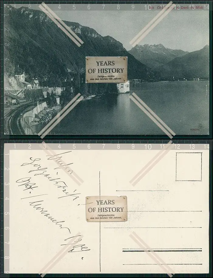 AK Schweiz Chateau de Chillon et Dents du Midi 1909 Montreux am Ufer des Genfer See M2023-06-30-188AK Schweiz Chateau de Chillon et Dents du Midi 1909 Montreux am Ufer des Genfer See