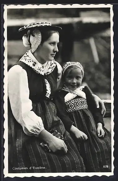 AK Schweiz, Costumes d`Evolène-Mutter mit Kind