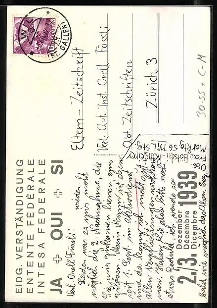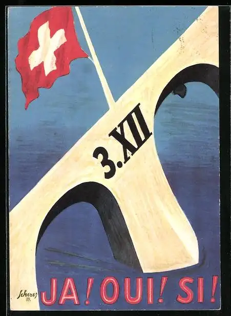 AK Schweiz, Eidg. Verständigung 1939, Ja! Oui! Si!, Flagge