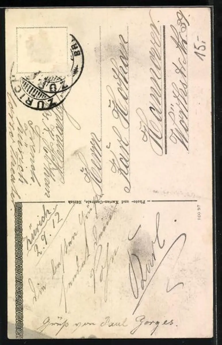 alte Ansichtskarte, gelaufen, Briefmarke entfernt, guter Zustand